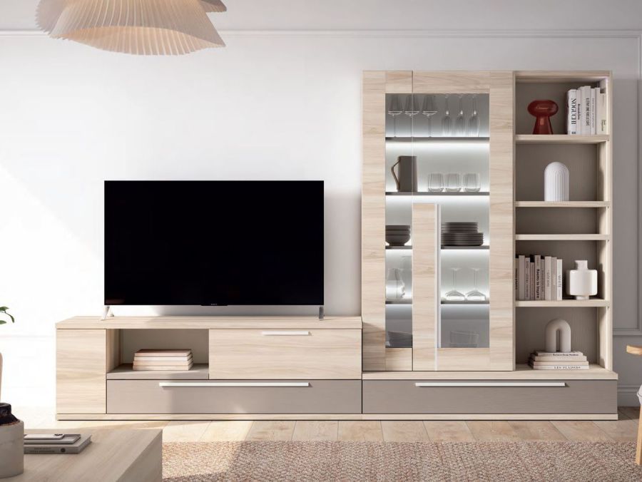 Contiene una amplia gama de módulos de diferentes medidas y formas con los que podremos diseñar y personalizar tu mueble de salón en función de tus necesidades. Algunos de sus módulos vienen incluidos en el precio con luces LED para darle un toque único y personal a tu salón .
